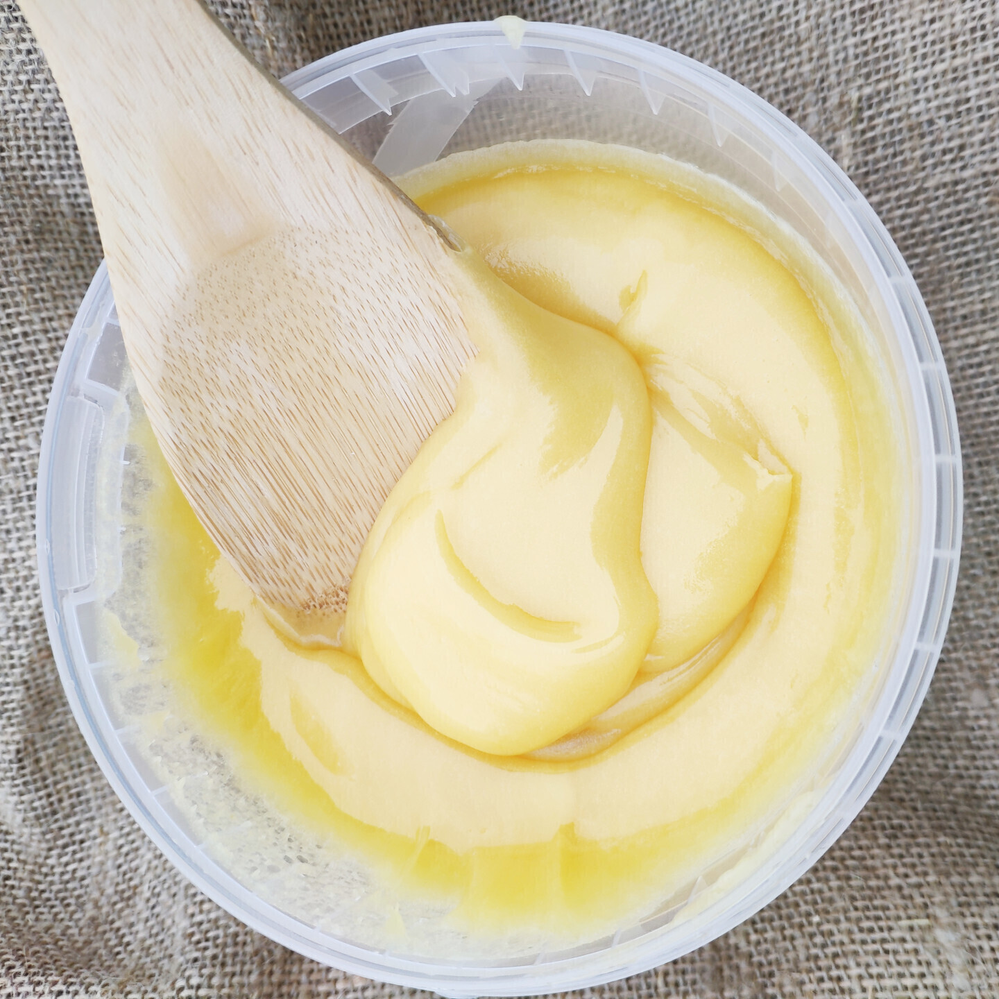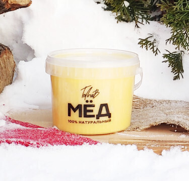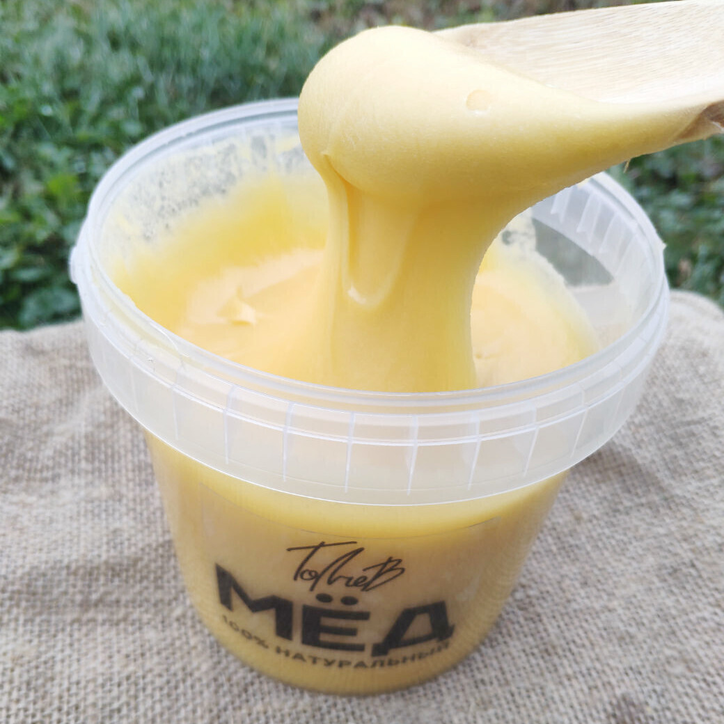Ведёрко 0,9 л крем-мёда. Подходит для тех, кто любит мягкий и тягучий мёд.