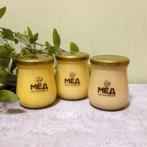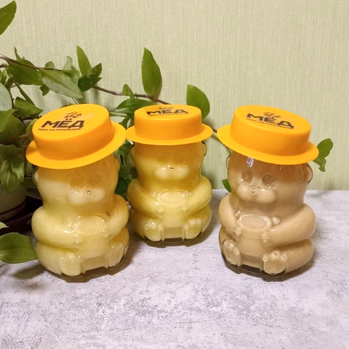 Набор из 3-х баночек натурального мёда разного вида из Ивановки. В каждой баночке по 400 грамм натурального мёда 2024. Баночки стеклянные в виде Мишки.